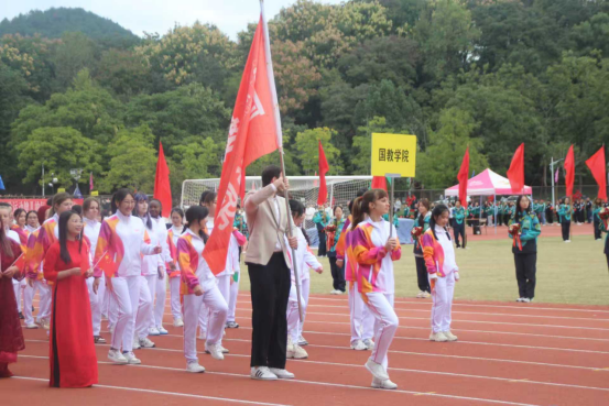 开幕式上,国际教育学院国际生代表队方阵成为全场焦点——学生们身着本民族传统服饰,步伐整齐、笑容灿烂,以鲜明的文化特色与昂扬的精神风貌,生动诠释了“一带一路连四海,五洲学子聚农林”的开放包容理念。紧随其后的学院舞蹈队表演更是点燃氛围:他们带来与浙BA同款的活力舞蹈,节奏明快、动作整齐,引得观众阵阵喝彩;表演结束后,队员们齐声高喊代表队口号“We are ZAFUer!We love China!”(我们是浙农林大人!我们爱中国!),既展现了国际学生对学校的归属感,更呼应了学院“培养知华、友华、爱华国际生队伍”的育人目标。