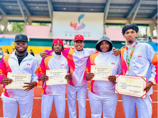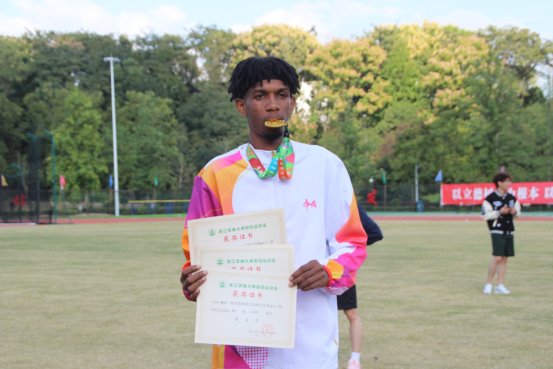 赛场上,国际学生们全力以赴、亮点频现。来自冈比亚的运动员苏马康在男子团体400米接力赛中表现亮眼:“我们的队伍越战越勇,配合越来越默契,每一次交接棒都是一次突破!”他和队友们凭借默契协作与顽强斗志,最终以出色发挥斩获该项目第一名。津巴布韦籍领队谭科则从团队视角分享了收获:“很荣幸作为领队,带领来自五洲四海的新同学亮相赛场。我们不仅展现了学院的风采,更通过团结协作赢得了‘体育道德风尚奖’,这份荣誉属于每一位参与者!”他特别提到,比赛中国际学生们互相加油、尊重对手的场景令人感动,“希望明年我们能继续突破,再创佳绩!”