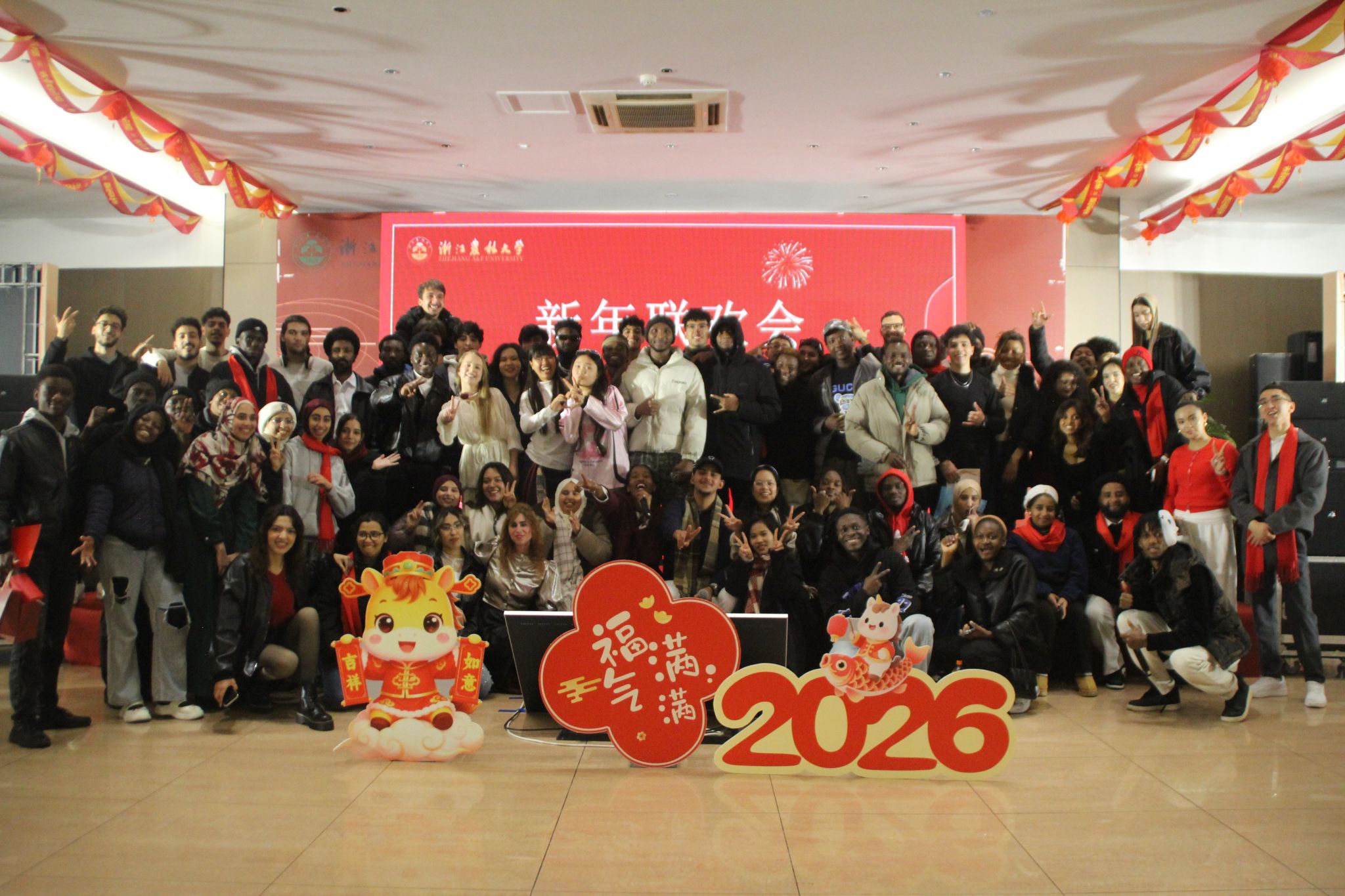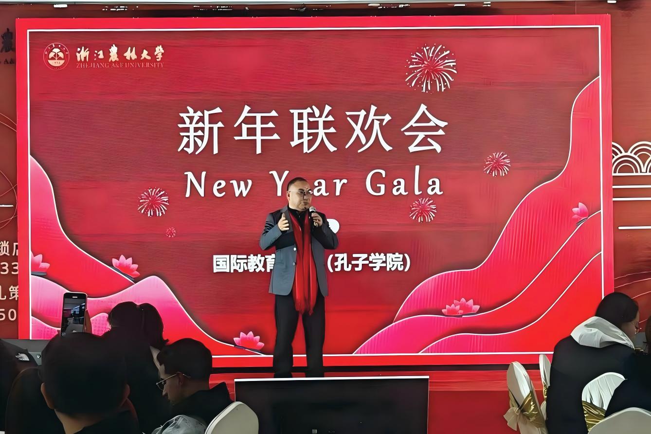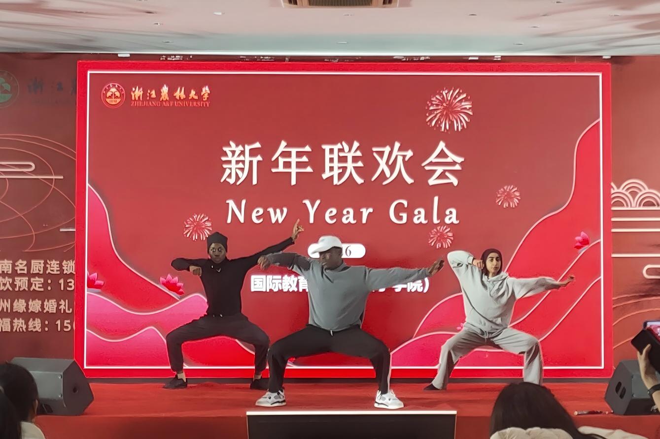 12月30日晚,我校国际学生2026年新年联欢会隆重举行,三百余名来自赞比亚、摩洛哥、津巴布韦、巴西、斯里兰卡、越南、马里等30多个国家留学生参加,437必赢会员中心院长赵有华,副院长钱潮、徐丽君,各专业负责人、学院教师、辅导员以及后勤服务中心员工代表共同出席,在暖意融融的冬夜里共迎2026年的到来。