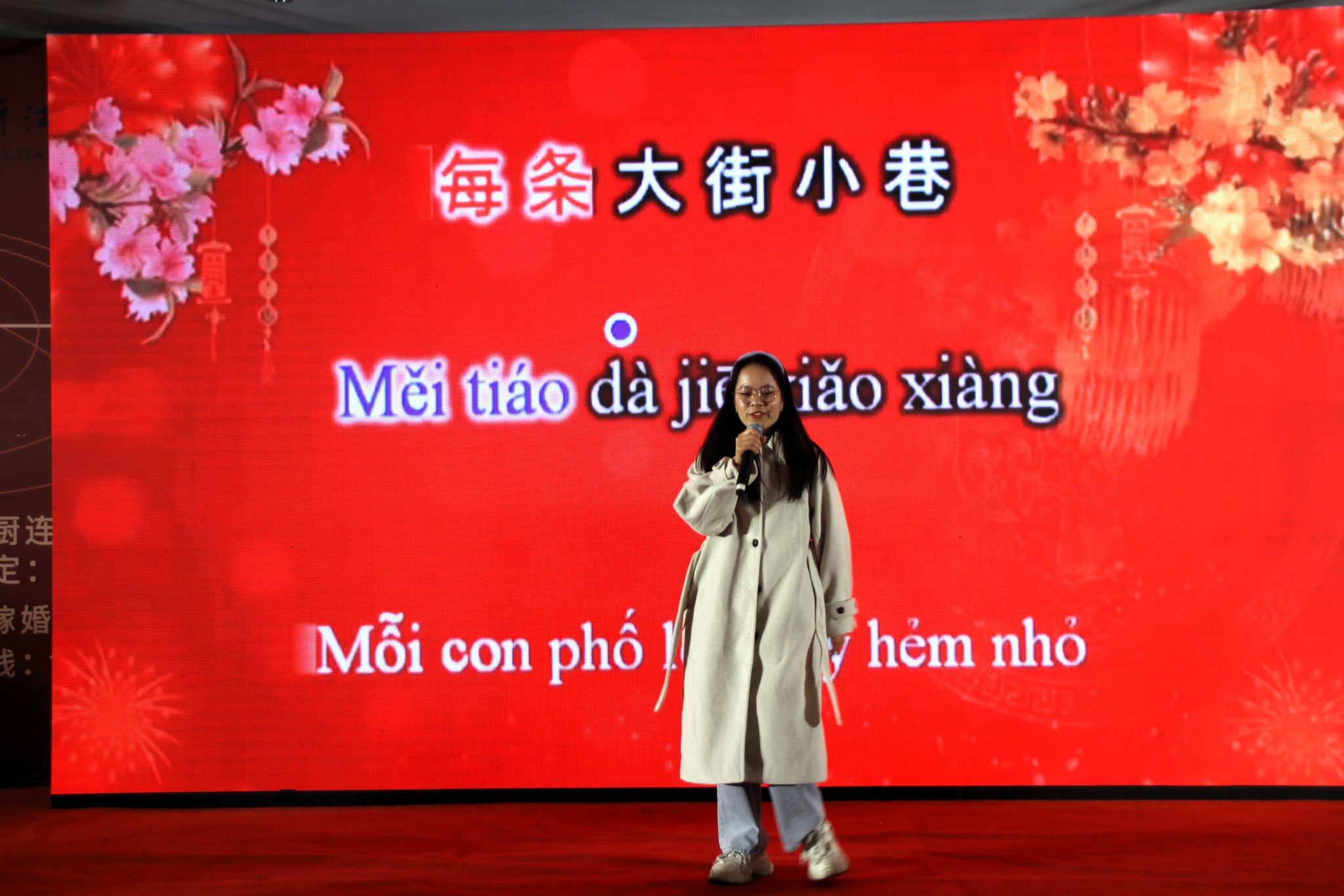 晚会节目精彩纷呈,津巴布韦籍留学生谭科以一首《Feeling Good》热情开场,醇厚的嗓音瞬间点燃全场气氛;喀麦隆籍留学生艾利克斯、摩洛哥籍留学生迪加、莫桑比克籍留学生林森带来的中国功夫表演,则在一招一式间演绎出东方武学的刚柔并济;六名摩洛哥籍留学生自编自演的小品,以生动诙谐的方式展现了北非风土人情,而中国学生05舞团带来的现代舞表演,以充满活力的节奏展现出属于中国青年的青春风采。传统投壶比赛趣味横生,古今交融中欢笑不断,而越南籍留学生阮氏倕一曲《恭喜恭喜》中文歌满载新年祝福,将气氛推向高潮。穿插其间的抽奖环节悬念迭起,惊喜与欢呼此起彼伏。舞台仿佛一幅流动的“世界风情画卷”,诠释着“各美其美,美美与共”的交融景象。
