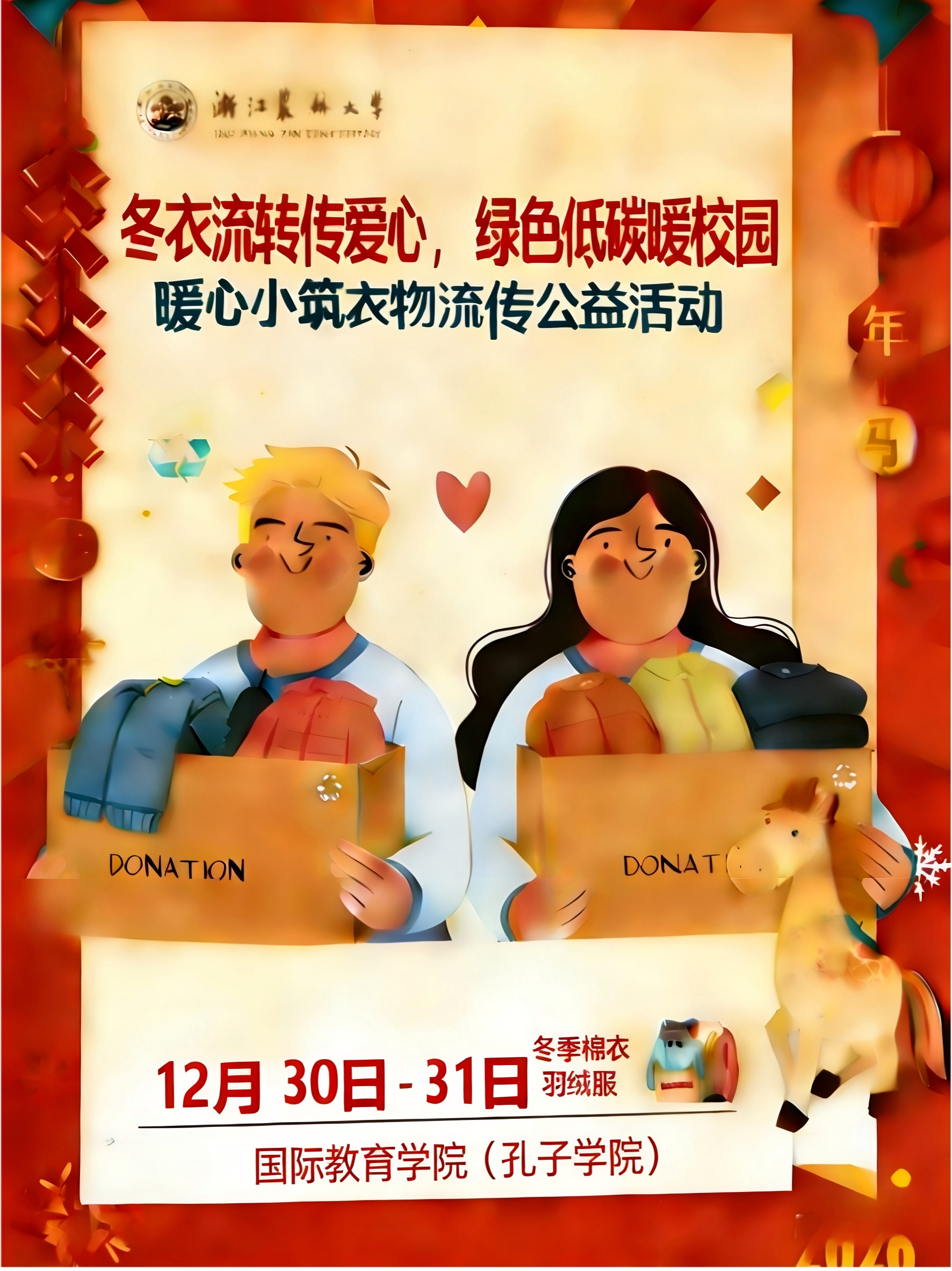 活动前期,团队成员通过多渠道宣传与积极动员,充分阐释了“旧衣新用、绿色循环”的环保意义,吸引师生捐赠闲置羽绒服、棉服等80余件,精准流转到了三十多位有需要的国际学生手中,传递了温暖。本次活动旨在搭建爱心桥梁,通过闲置资源的循环利用,为有需要的学生送去冬日温暖,同时倡导低碳环保的生活方式。